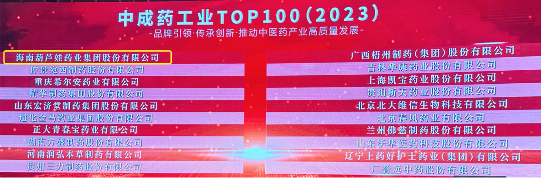 会上,还发布了“2023中成药工业TOP100”榜单,彩虹多多药业集团荣耀上榜。
